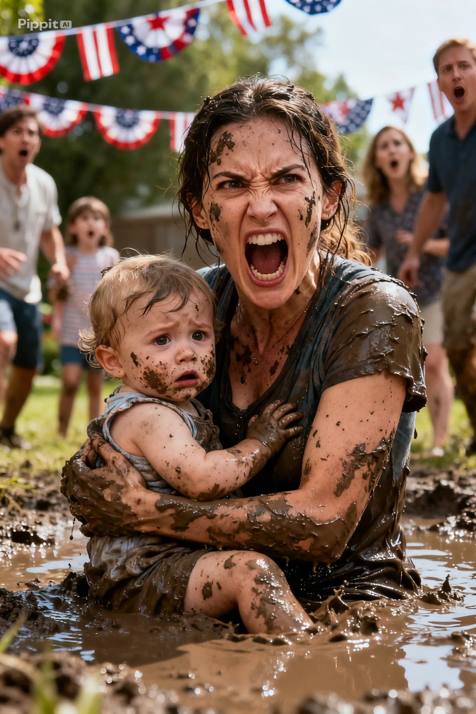 Mud filled her hair, ears, and eyelashes.