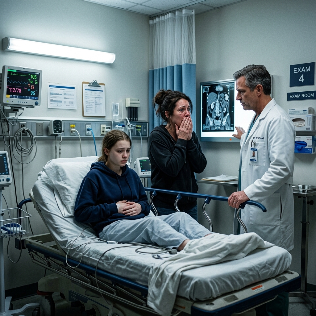 My fifteen-year-old daughter, Ava, was curled on the couch with both arms wrapped around her stomach, her face gray with pain and sweat dampening the hair at her temples. She had been complaining for three days—nausea, cramping, stabbing pain low in her abdomen, then vomiting, then pain again. Not dramatic crying. Not a performance. Just that awful, breathless silence people make when they hurt too badly to keep talking.